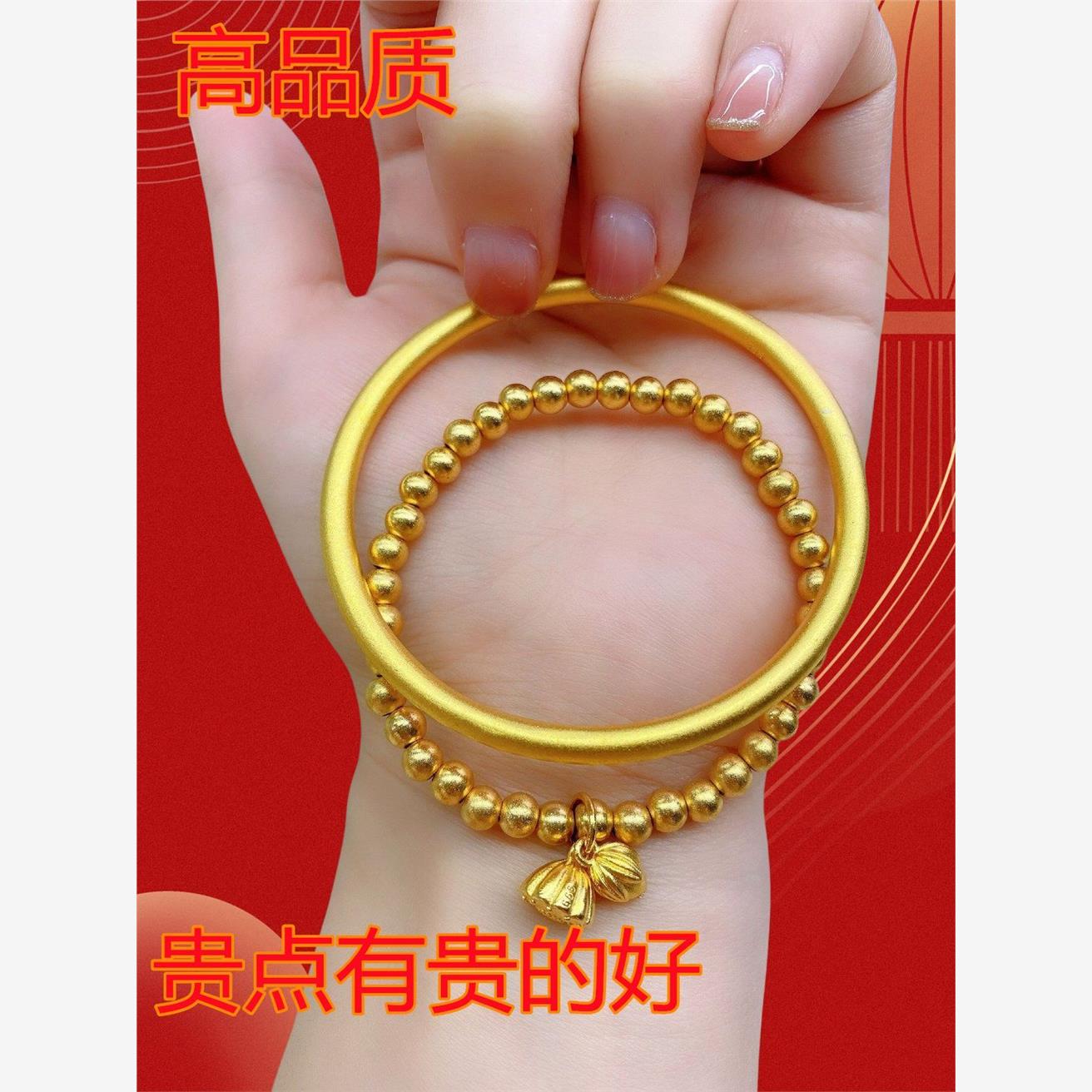 两世欢沙金手镯手环手链镀金古法制作高级双生花金仿真久不掉色潮