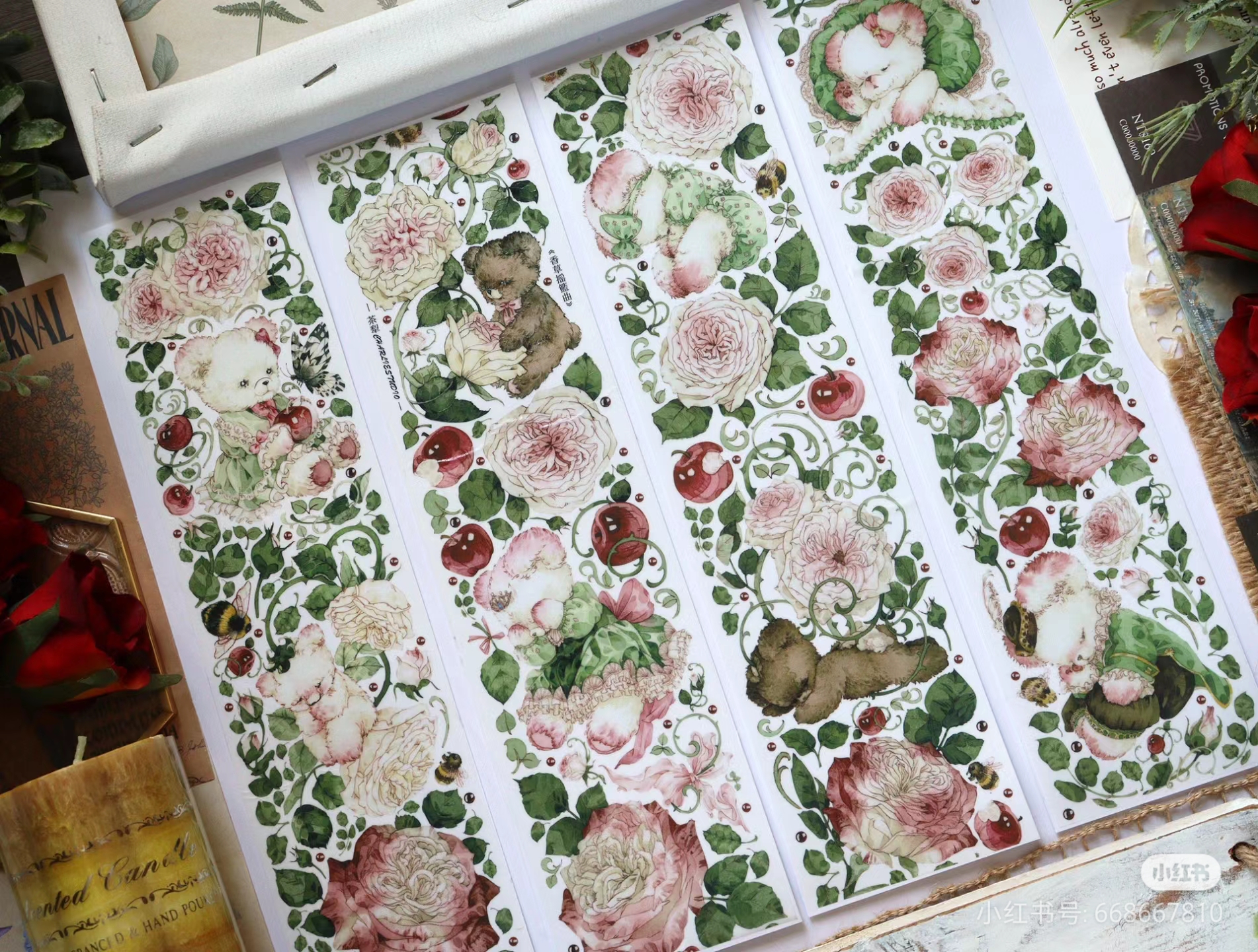 【68包邮】茶犁 香草摇篮曲玫瑰花窗花开半夏血色唱手帐胶带分装