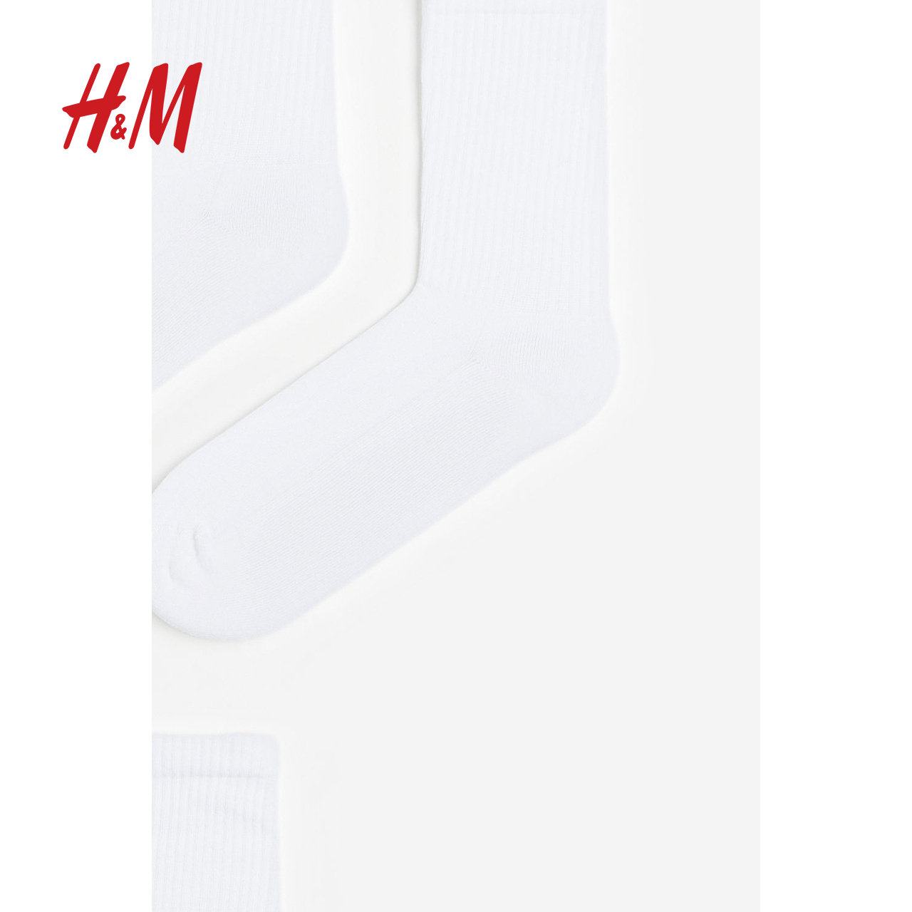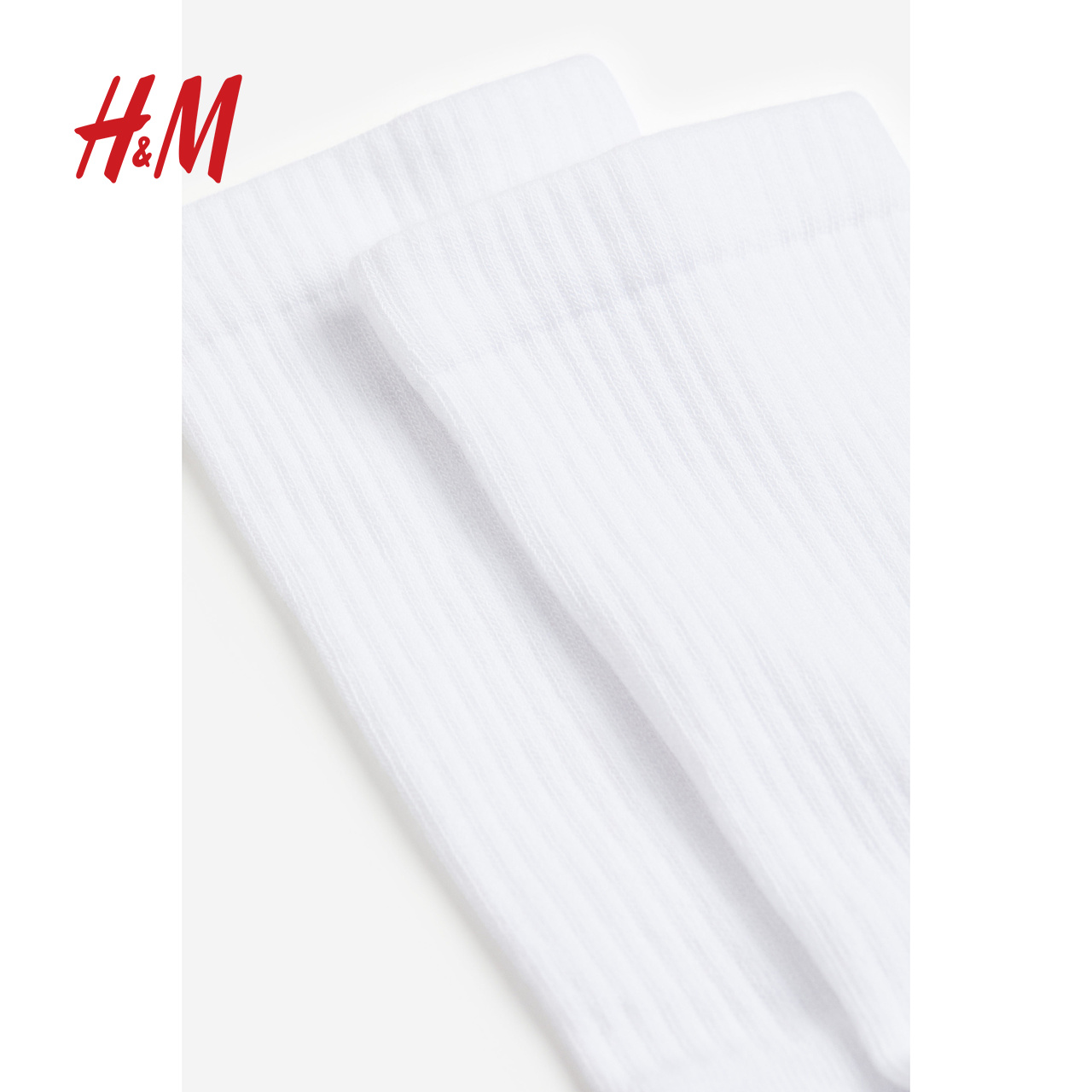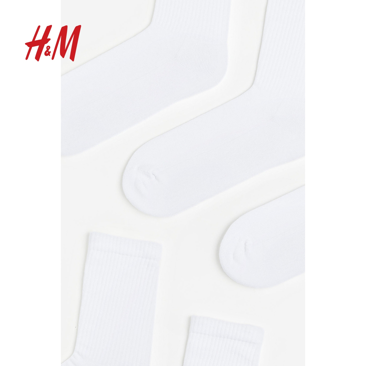 HM男士袜子5对装柔软简约运动棉混纺细密白色中高筒袜子1188057