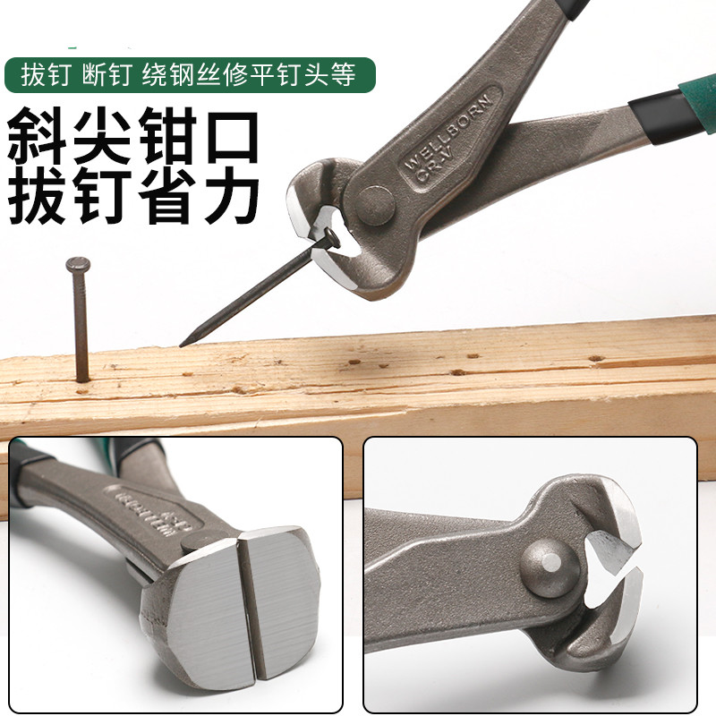 平口顶切钳拔钉起钉胡桃钳断夹钉工具扎线钳子多功能铆钉拆除神器