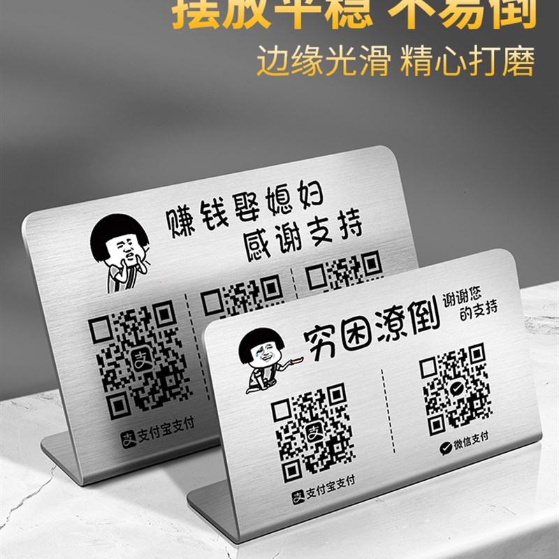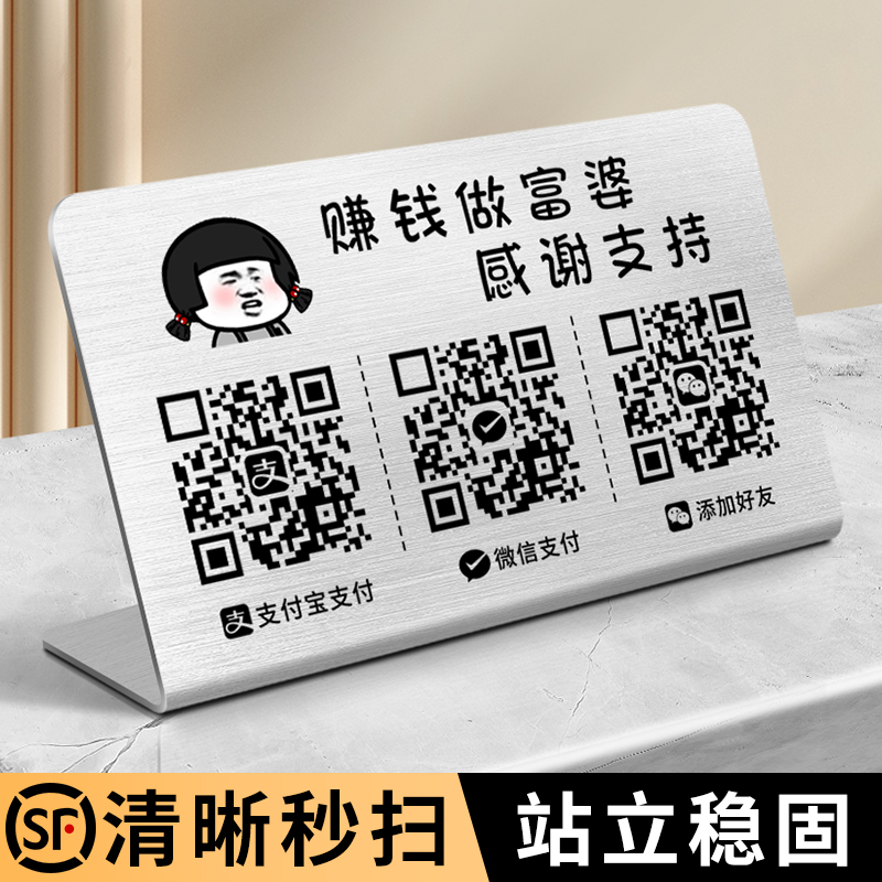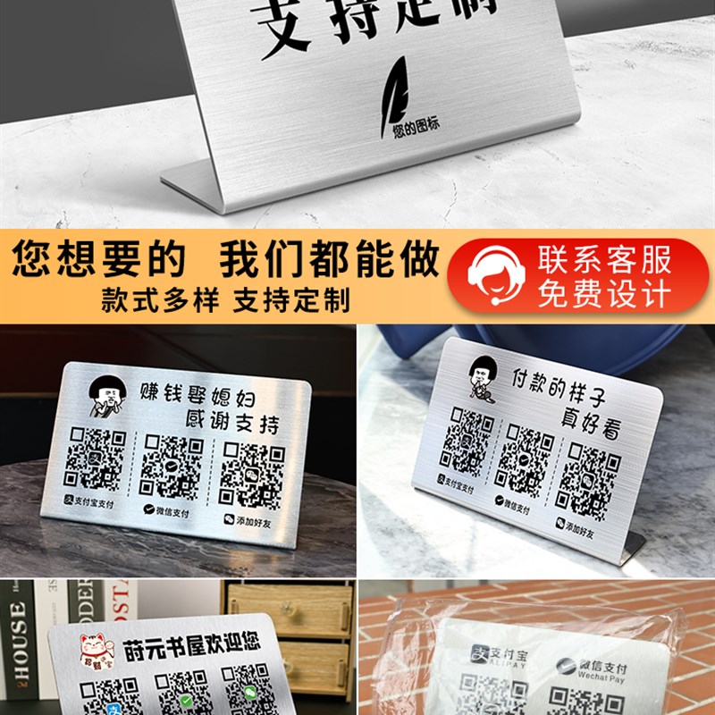 现货速发二维码展示牌收款码扫码支付收付款收钱立牌制作不锈钢收