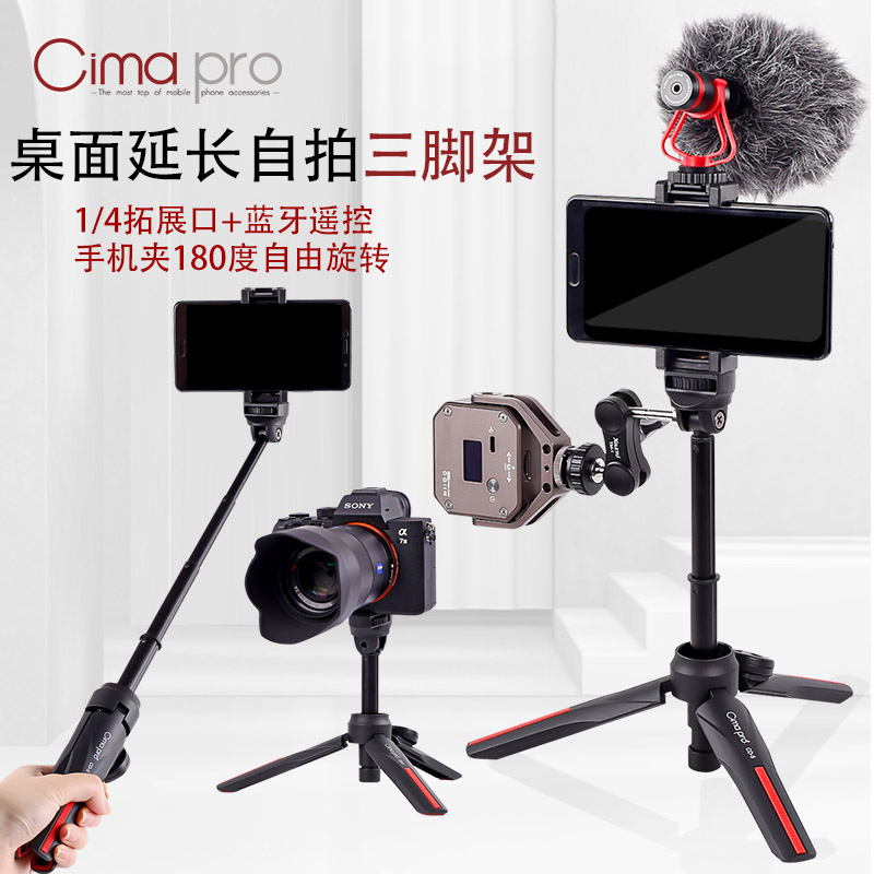 桌面伸缩三脚架手持自拍杆五节支架手机蓝牙遥控便携多功能通用架