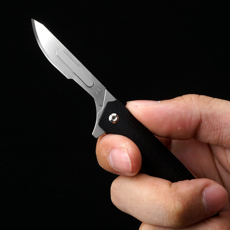 迷你雕刻专业美工刀钥匙扣小刀G10柄可替换24号刀片带皮套折叠刀