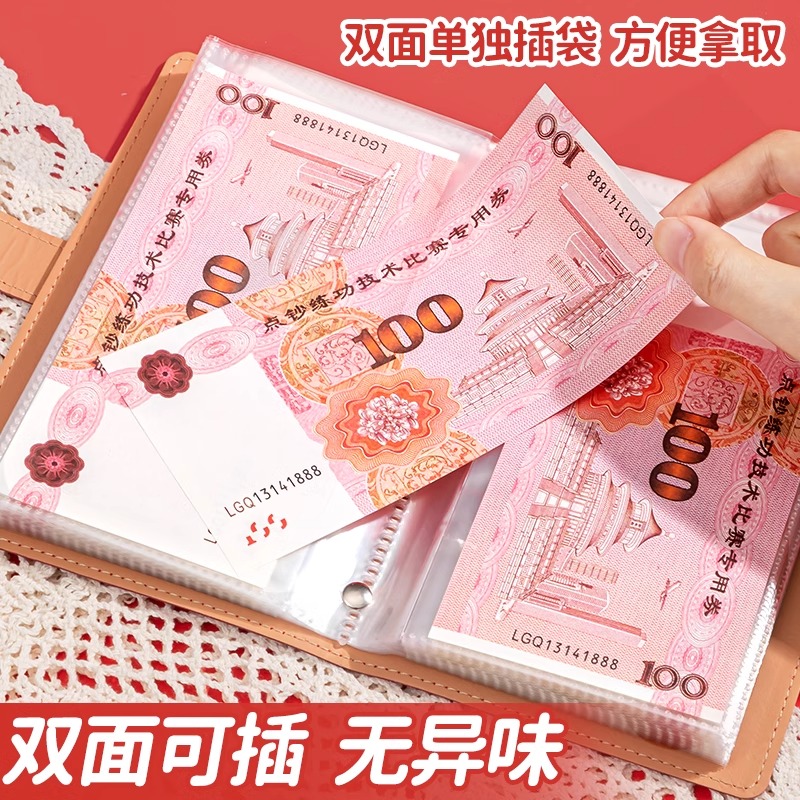 现金存钱本可放只放现金收纳袋大容量2024新款网红理财防水收纳册收纳包收藏册存钱夹存放袋儿童纸币存钱袋