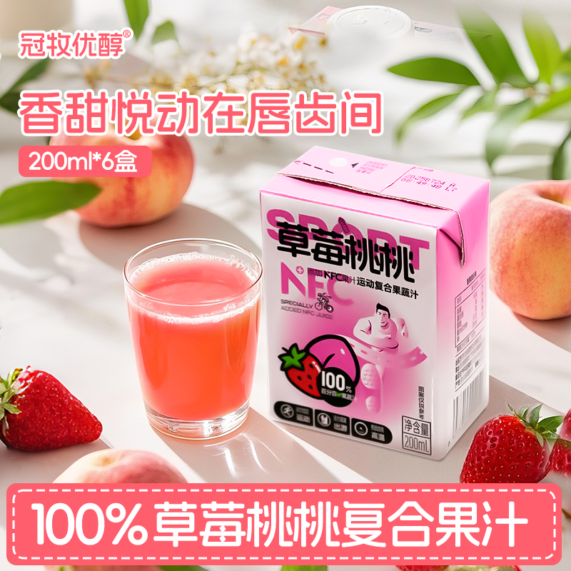 冠牧优醇草莓桃桃果汁水果风味100%复合果汁添加nfc原浆0脂肪饮品