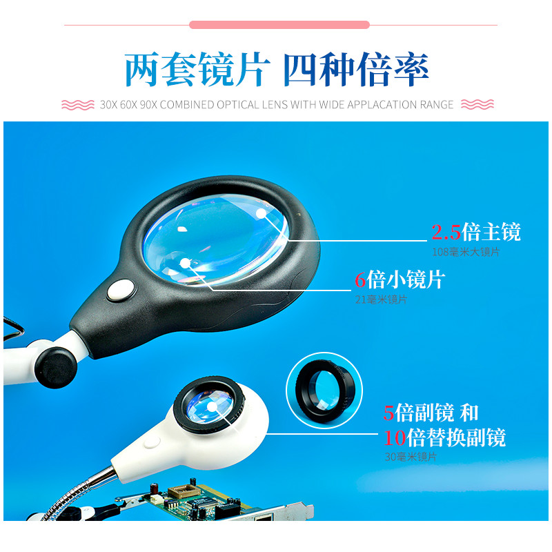 台式放大镜10倍高清维修电子电路板钟表机械焊接台带led灯可插电