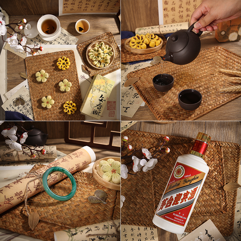 复古风拍摄道具美食茶叶拍照做旧草编垫子新年特产糕点茶叶零食玉器珠宝拍照背景板装饰摆拍氛围布置