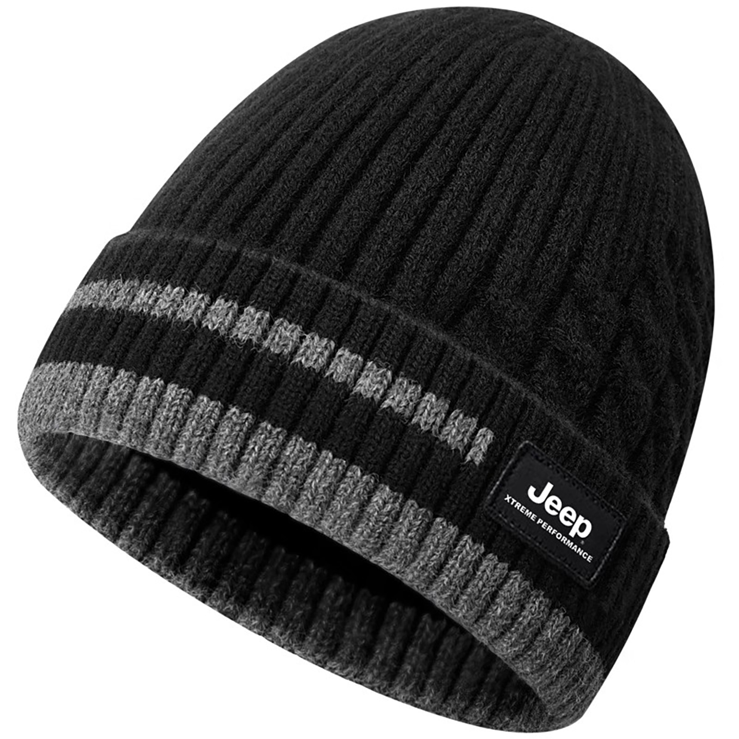 jeep吉普男士针织帽毛线帽冬季中老年人防风保暖加绒大头围冷帽男