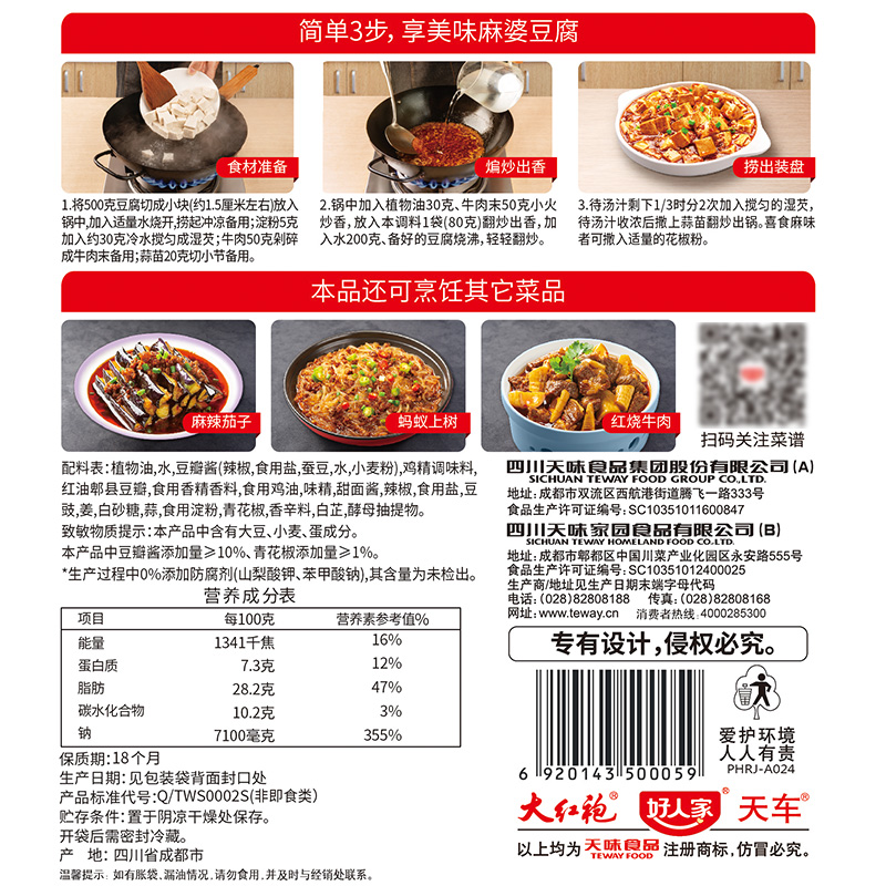 好人家正宗麻婆豆腐调料80g包家用四川麻辣豆腐火锅调料牛肉番茄