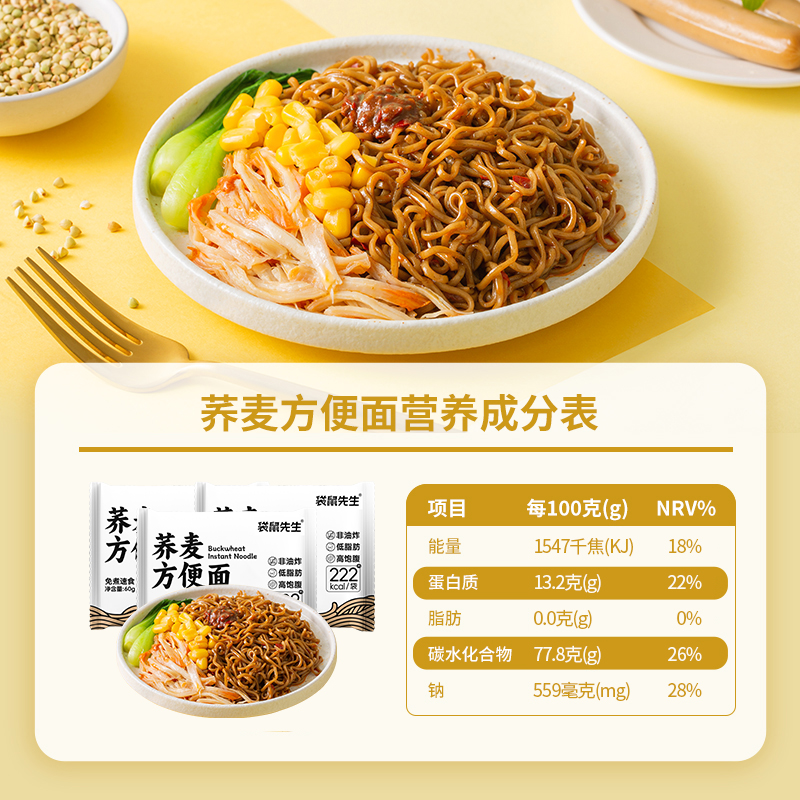 0脂肪荞麦面方便面减泡面低脂粗粮免煮全面条主食无糖精代餐食品