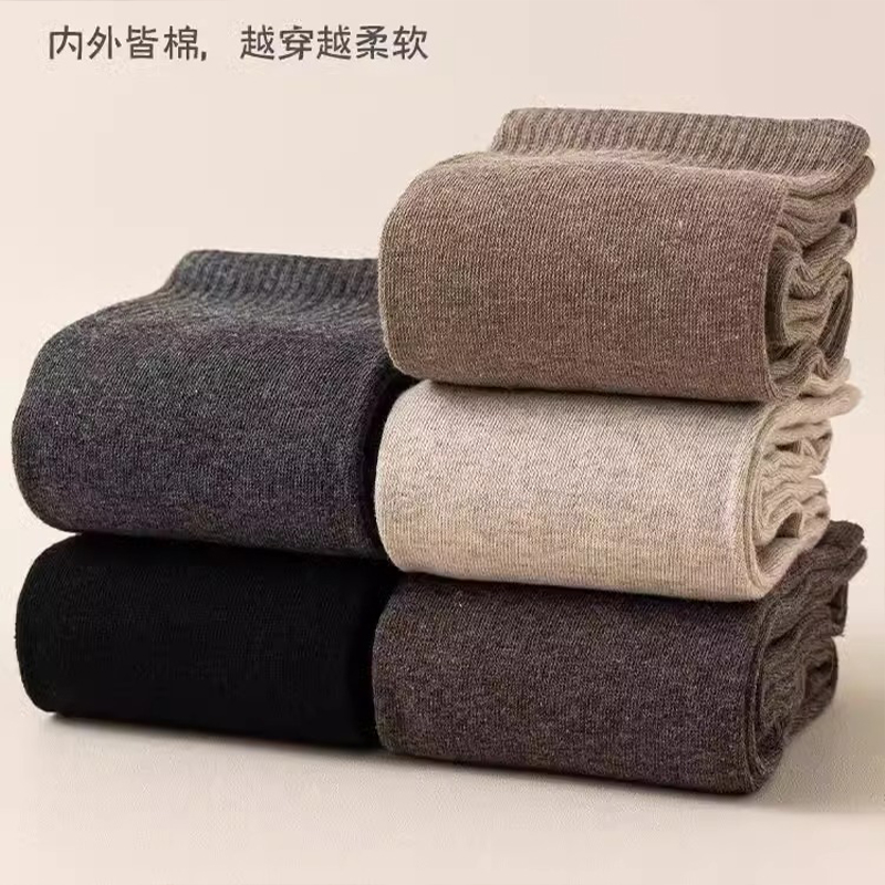 5双装 往往精梳棉质3A抗菌女士袜子中长筒袜纯色休闲男袜秋冬季