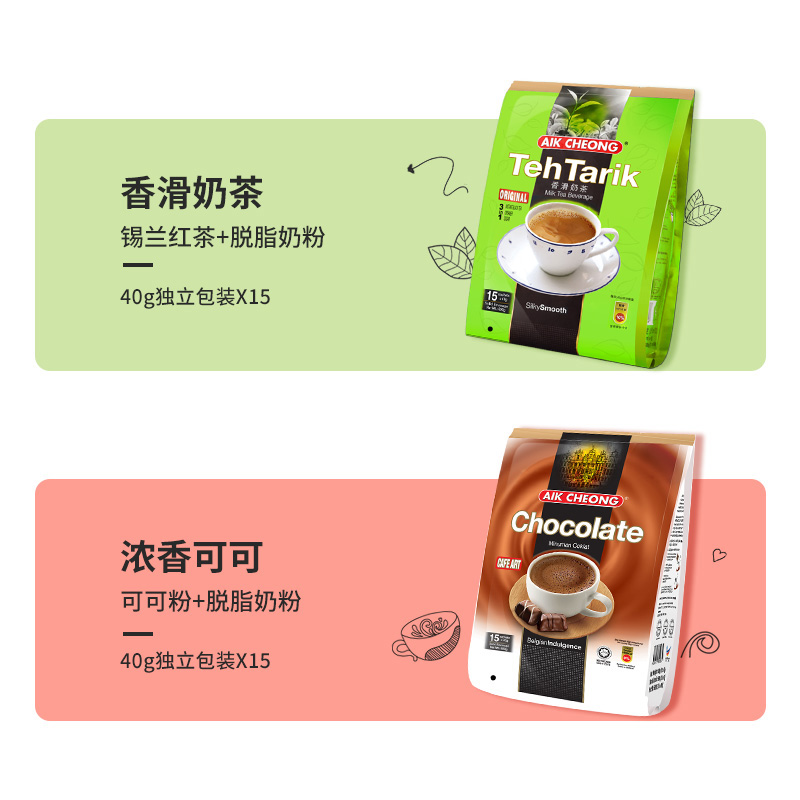 马来西亚进口益昌三合一速溶奶茶冲饮冲泡早餐代餐奶茶粉小包袋装