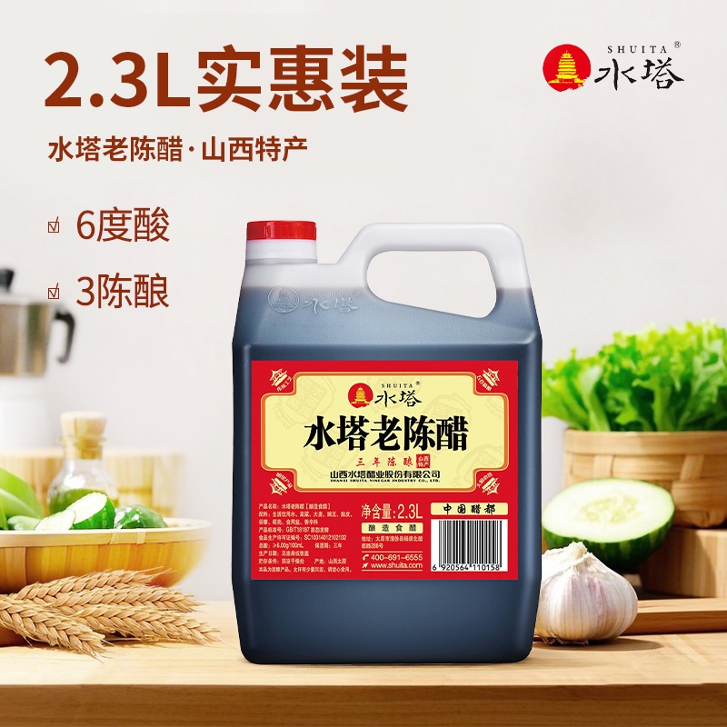 水塔家用食用老陈醋三陈酿陈醋山西醋食用饺子醋6度泡黑豆2.3L