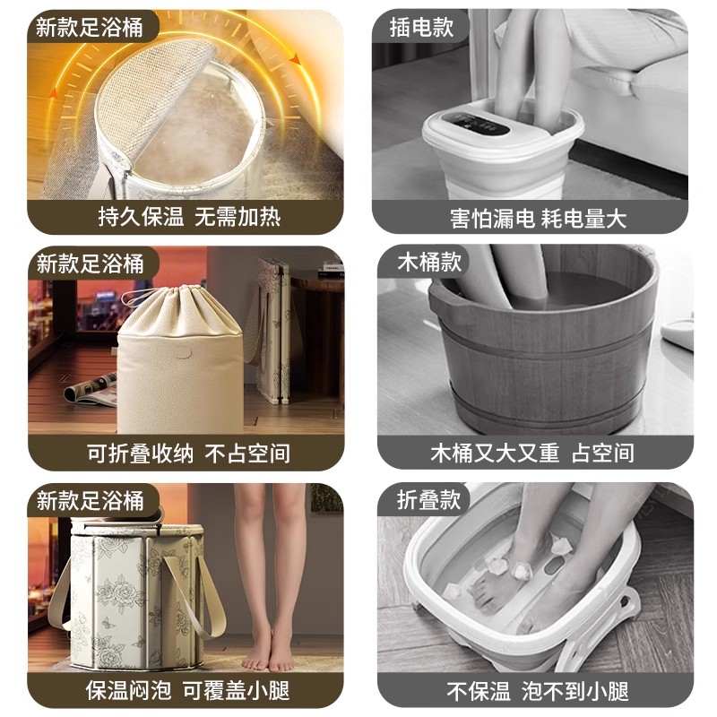 【政府补贴】可折叠泡脚桶过小腿家用洗脚旅行便携保温袋高深足浴