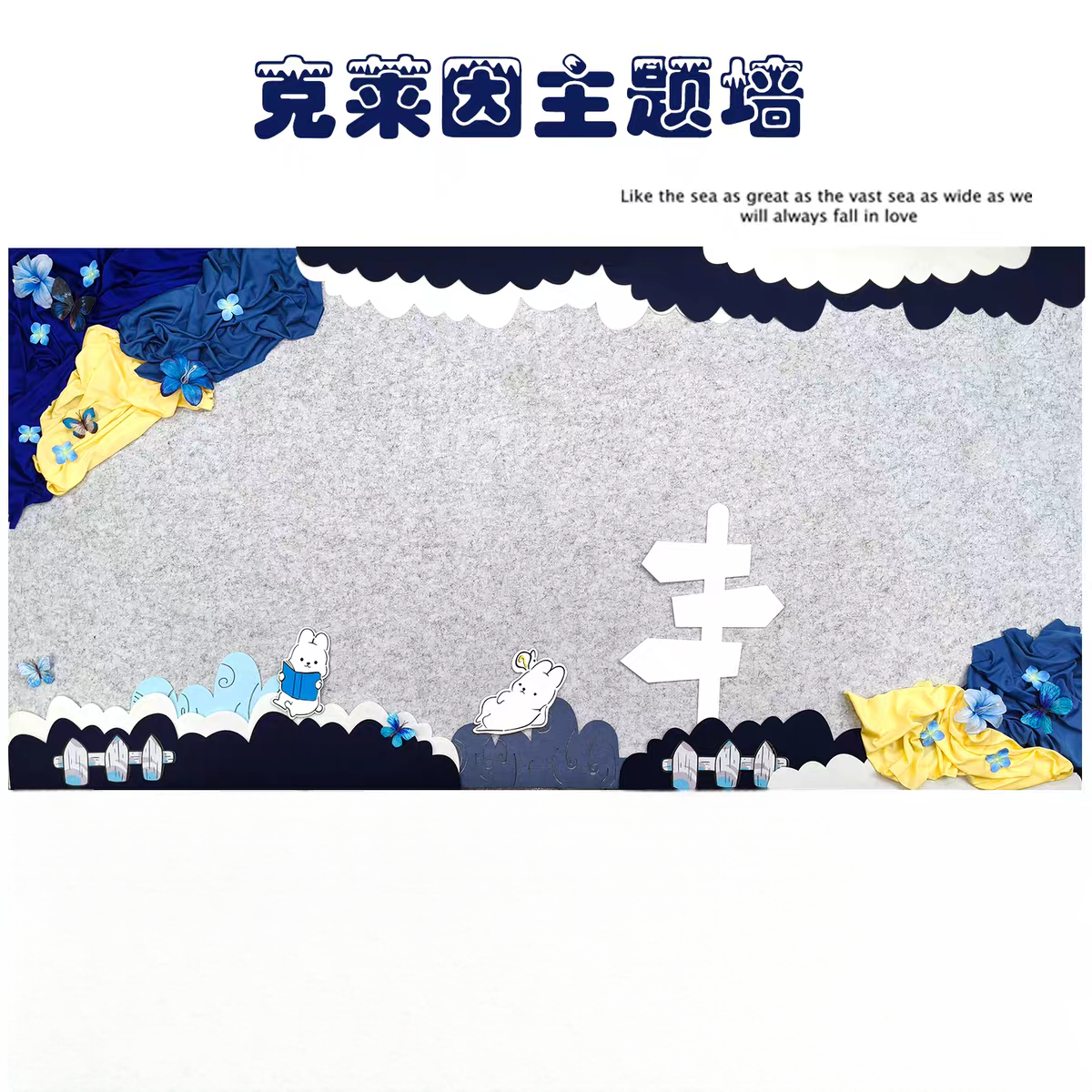 蓝色系幼儿园小学墙面墙贴套装黑板报卡通动物主题墙小兔企鹅蘑菇