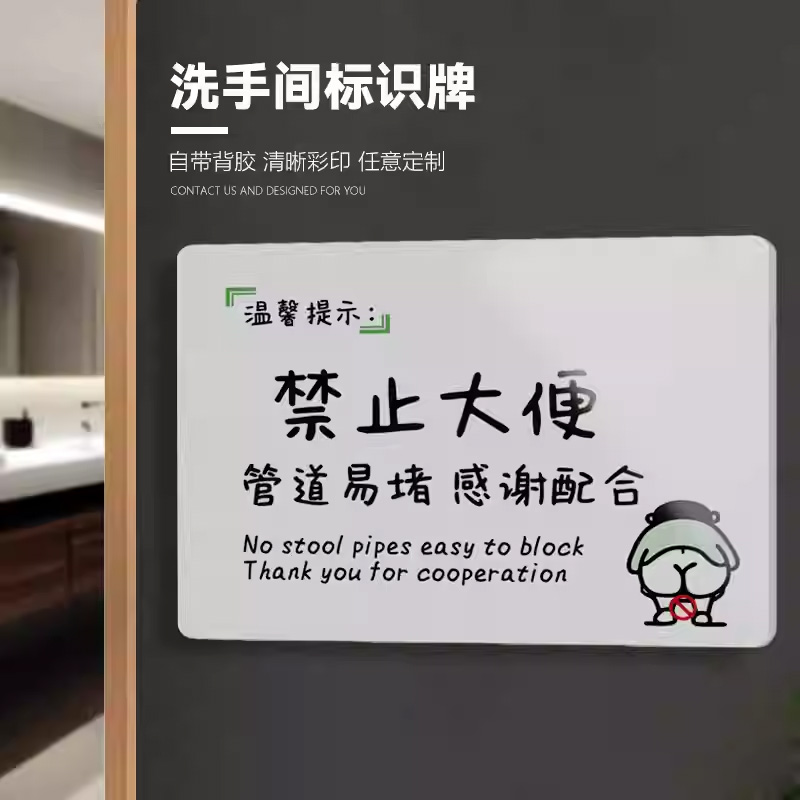禁止大便提示牌亚克力垃圾请入篓便后冲厕洗手间标识牌卫生间标识牌温馨提示牌创意厕所标语牌标志牌贴定制