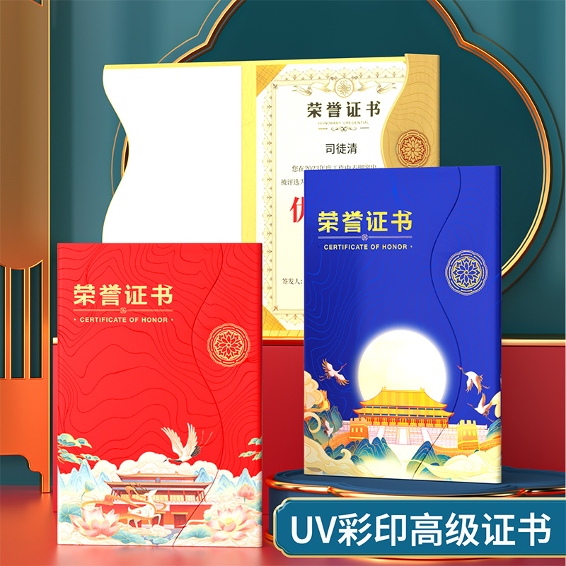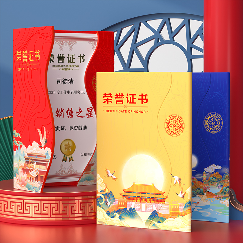荣誉证书外壳国潮风模板高档烫金封皮套证书精美a4内页纸芯可定制比赛获奖证书优秀员工表彰教师聘书