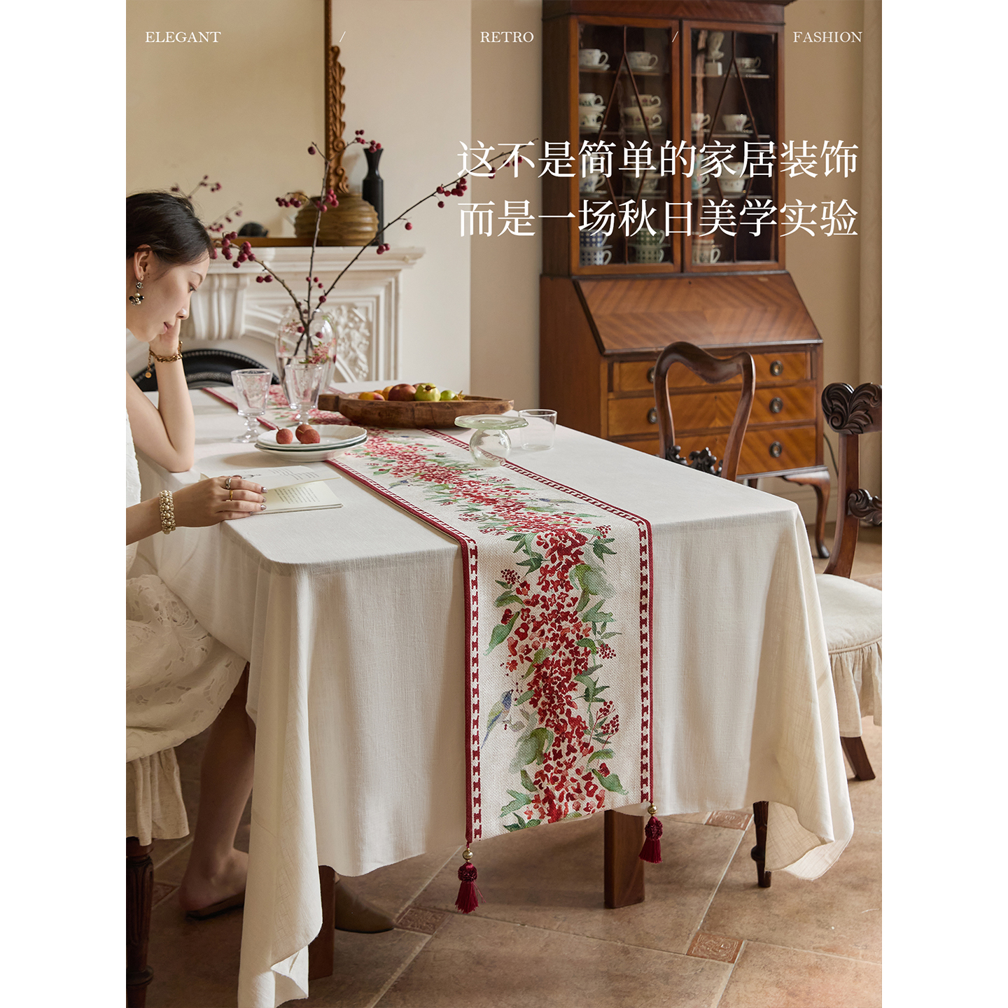 蜡笔派郭俊池联名|红果果系列|丹桂桌旗红色轻奢高级感餐桌布盖布