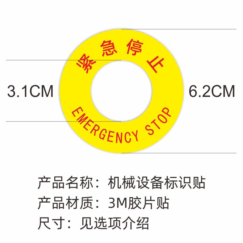 亚克力开关标识贴旋转方向指示牌箭头方向标签机械紧急停止坐标按钮提示急停启动紧急停止PVC贴暂停贴标签3M
