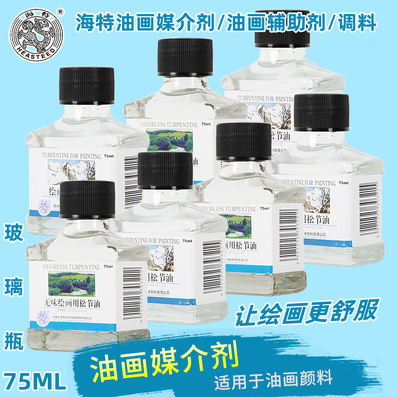 海特75ML无味绘画用松节油透明颜料稀释剂油画颜料媒介剂绘画用松节油颜料稀释油画辅料调料玻璃瓶