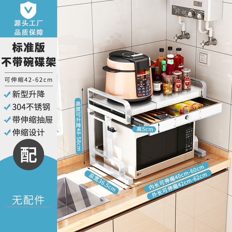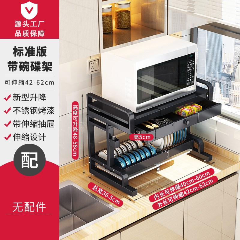 可伸缩厨房置物架微波炉烤箱架子橱柜下方桌面水槽边电饭锅收纳架