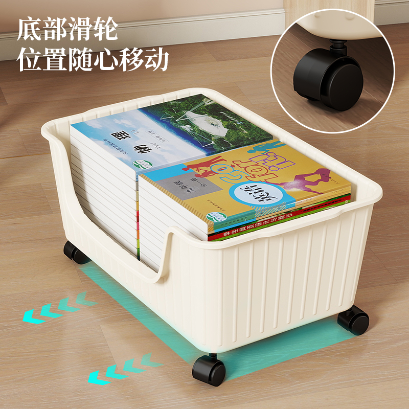 学生教室书本收纳箱桌下书包滑轮可移动收纳筐大容量超大置物书架