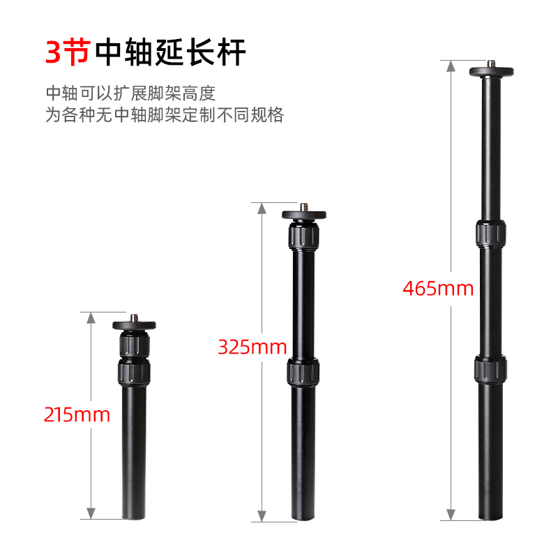 喜乐途 铝合金三节延长杆3节中轴伸缩加长杆云台三脚架增高配件