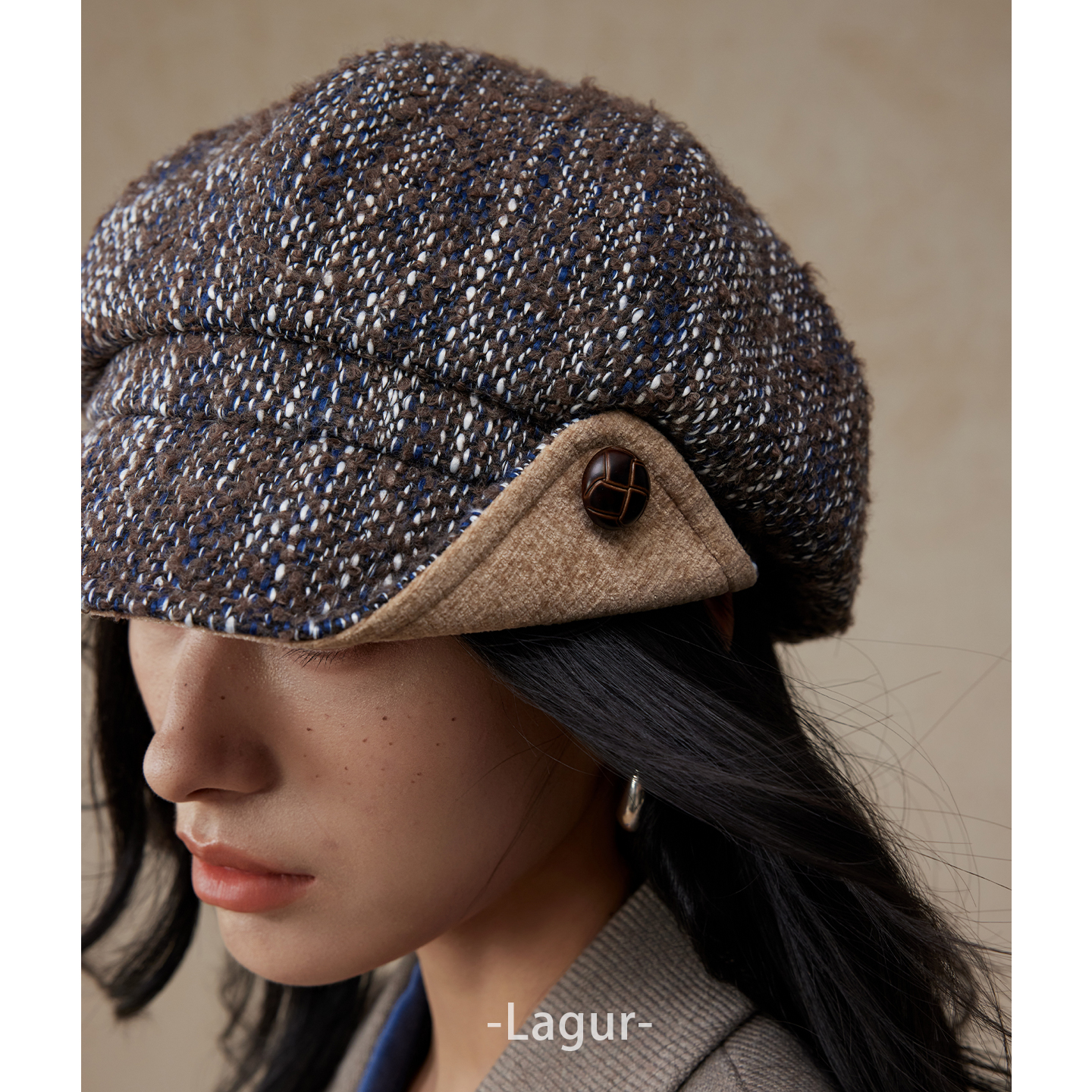 Lagur(伦敦街头)羊毛混纺贝雷帽女显脸小加厚复古秋冬花苞帽纽扣