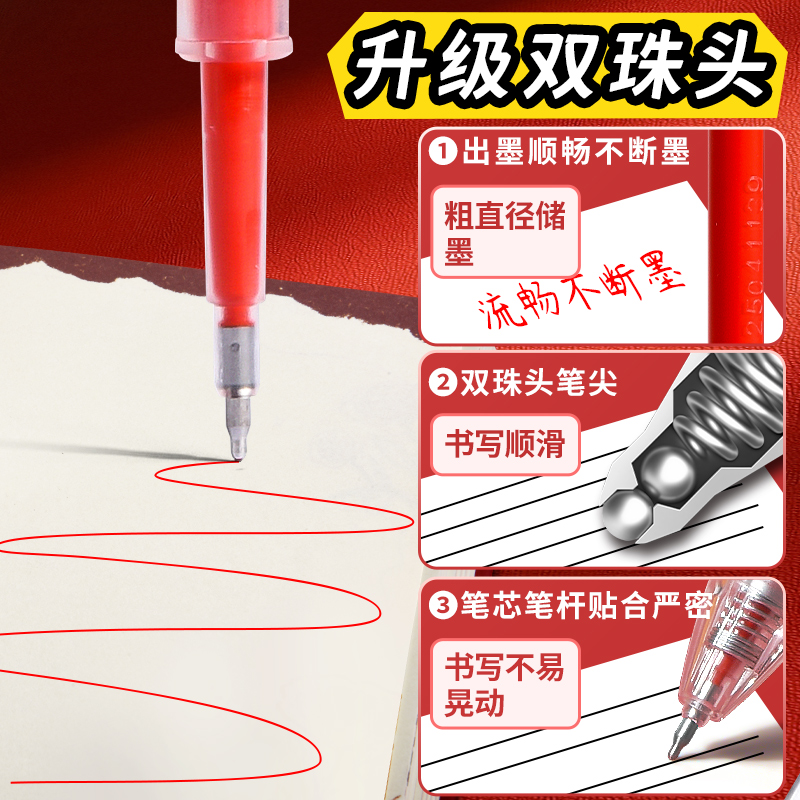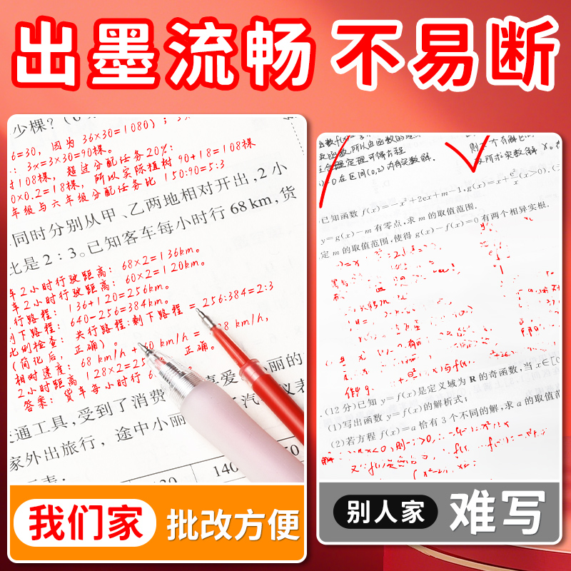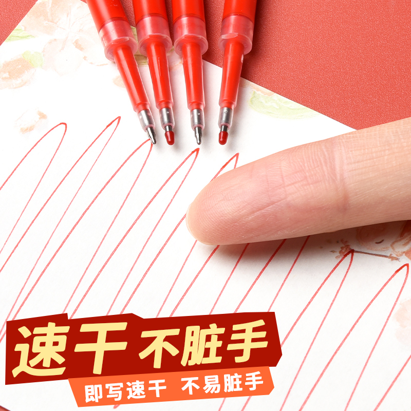 晨光红色笔芯按动式0.5mm子弹头按动笔中性笔替换芯st头速干臻顺滑红笔芯水笔芯学生专用老师批改做作业用