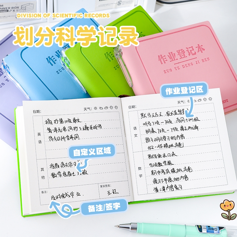 便携一二年级随身迷你作业登记本笔记本高颜值小学生可爱记作业本记录紫色粉色背诵完成单词蓝色摘抄日期