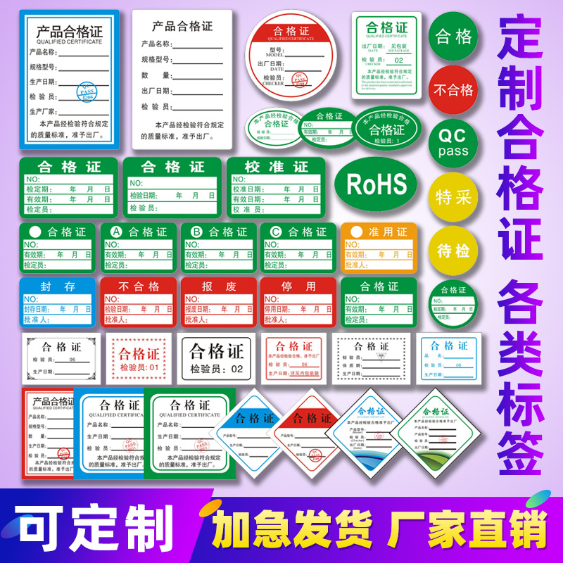 物料不合格证qcpass特采rohs不良品ng尾数报废不干胶标签贴纸定制样品iqc检okqc不粘胶日期检验校准