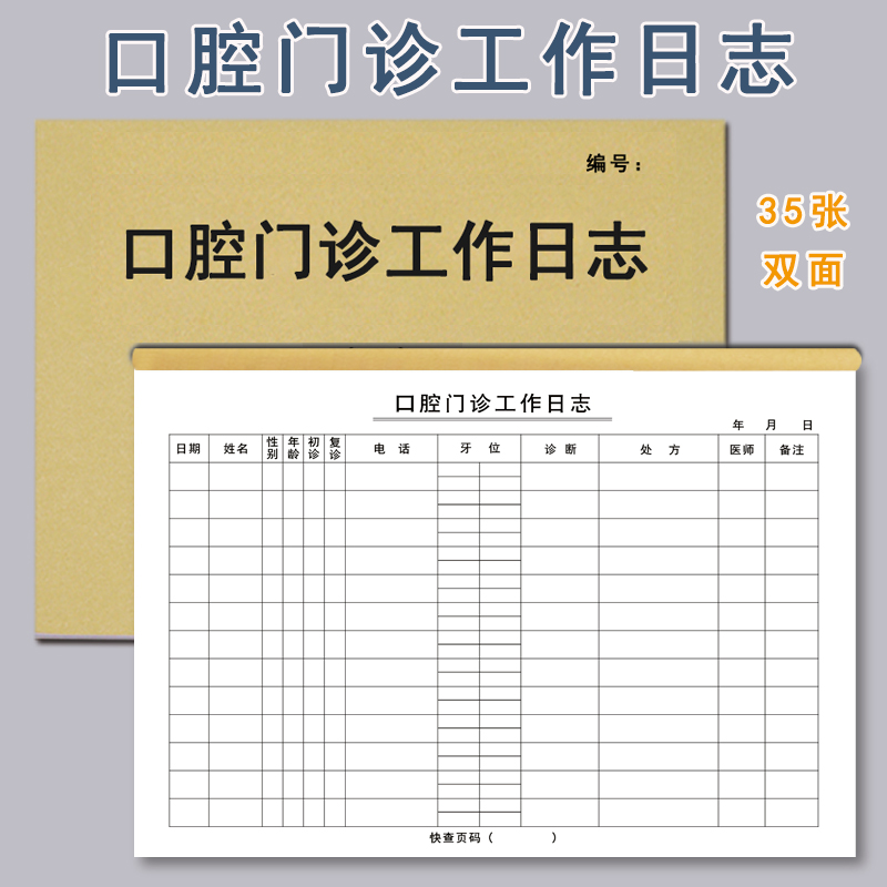口腔门诊工作日志口腔诊所工作日志本高温蒸汽灭菌消毒记录本口腔诊所前台登记工作日志簿口腔医院门诊登记本