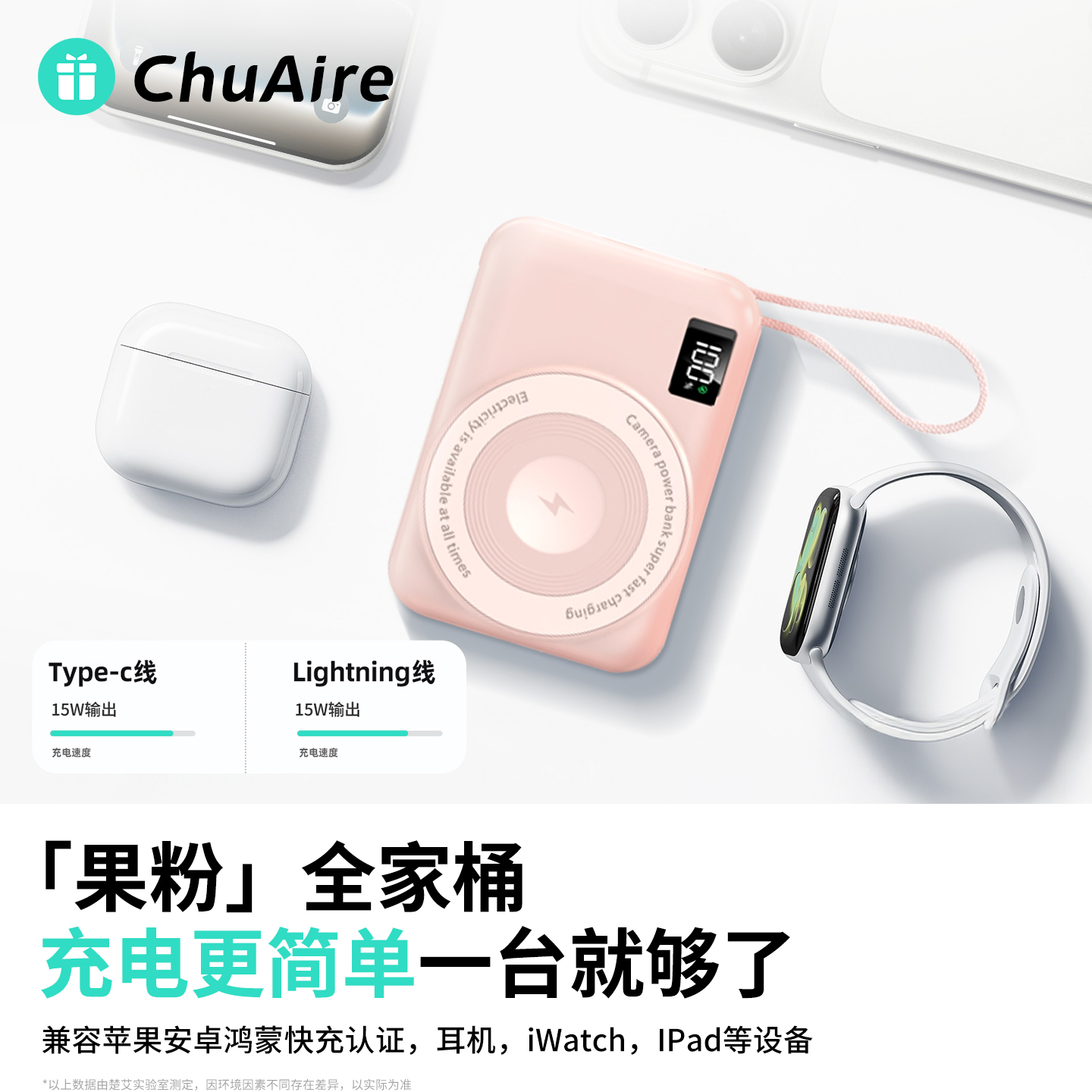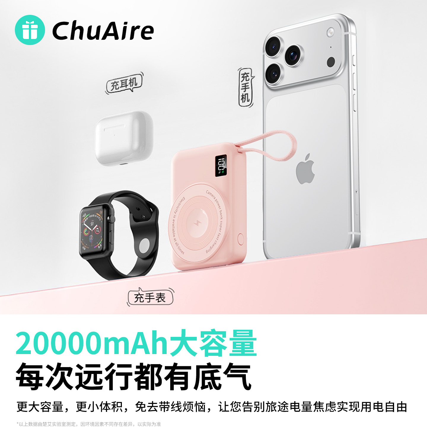 【五合一大容量】楚艾3C认证新国标可上飞机磁吸20000毫安充电宝自带线magsafe手表移动电源适用苹果华为小米
