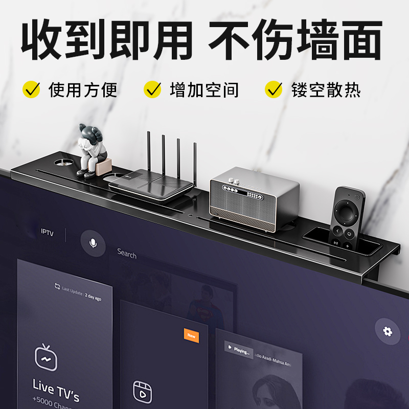 免打孔电视机顶盒置物架显示器路由器收纳架支架桌面承重碳钢顶部