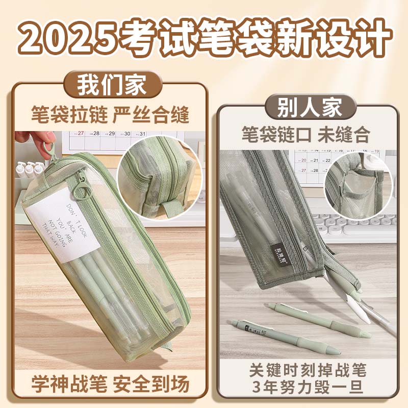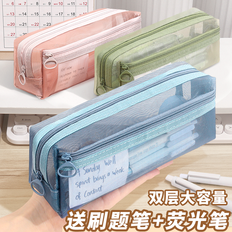 升级加厚!网纱笔袋大容量男孩女孩2025新款文具袋透明考试专用女生小学生初中生铅笔盒简约便携高颜值文具盒
