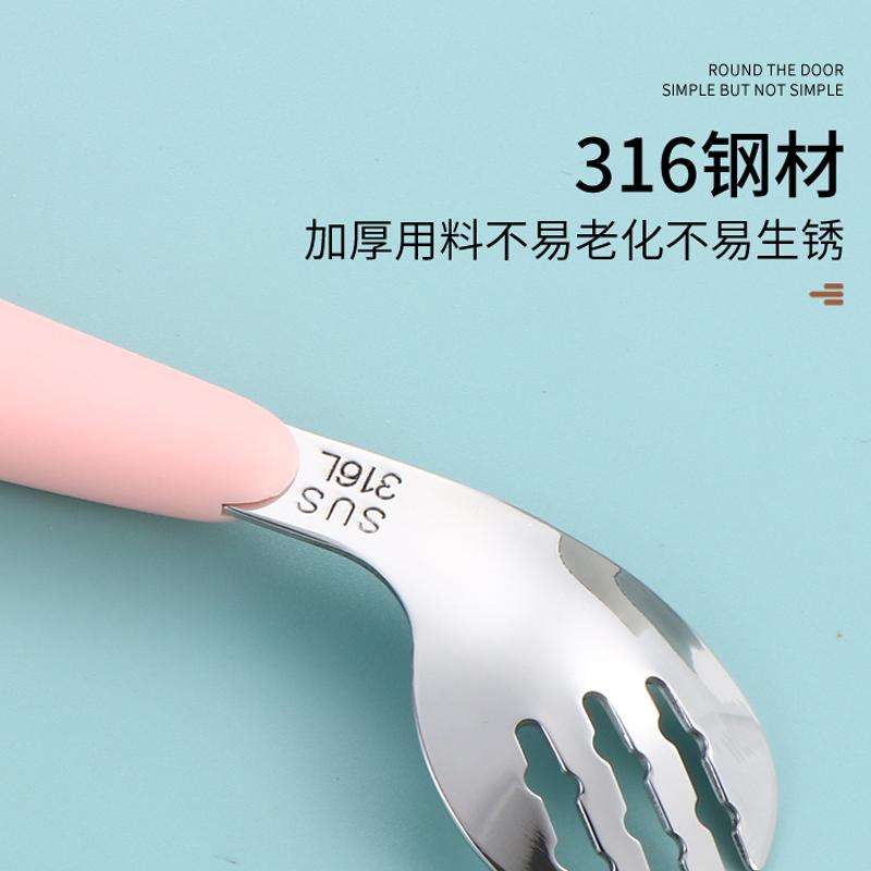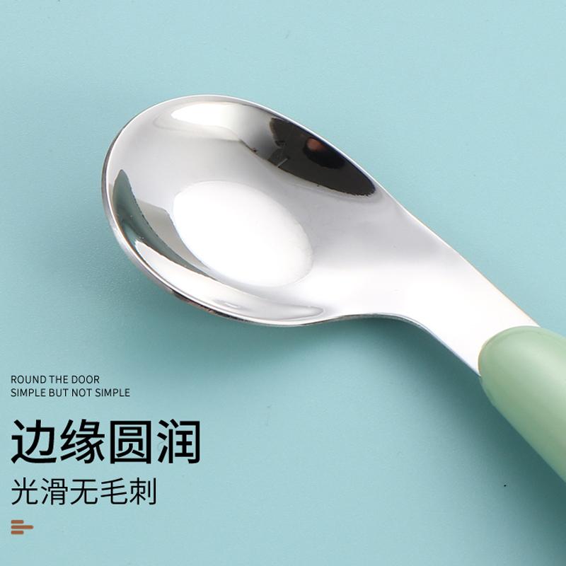 316L不锈钢宝宝勺子儿童元宝勺1-5岁学吃饭训练勺子初学者弯头勺