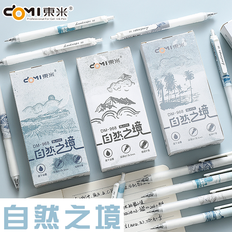 东米DM968自然之境按动中性笔高颜值国风小众学生大容量刷题黑笔ins顺滑流畅速干双珠ST刷题笔中性笔好写学生