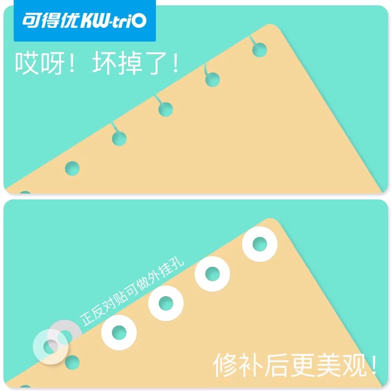 可得优QT-01活页纸加强圈贴打孔补强贴纸透明活页孔修护修补孔贴圆形文件加强圈护圈配件250枚圆孔白色保护贴