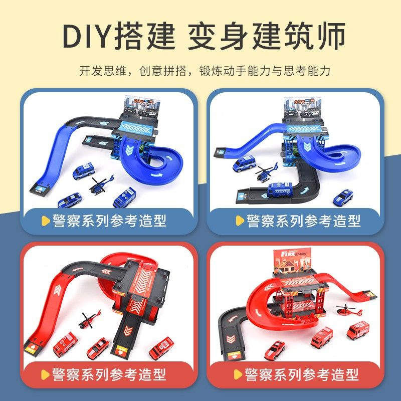 儿童轨道停车场警察消防工程模拟主题场景闯关过家家DIY组装玩具3