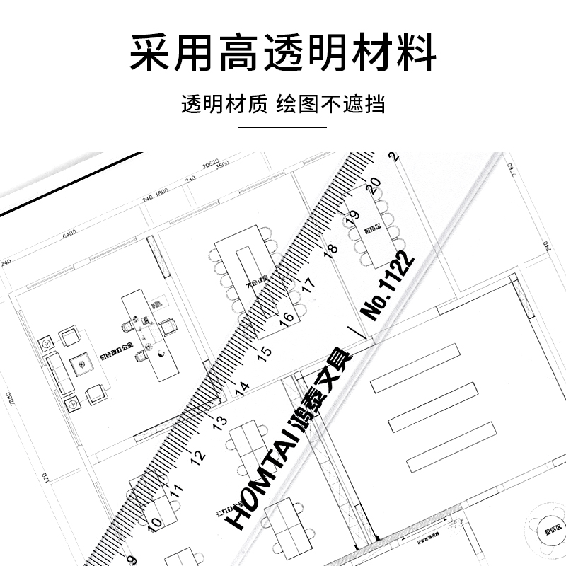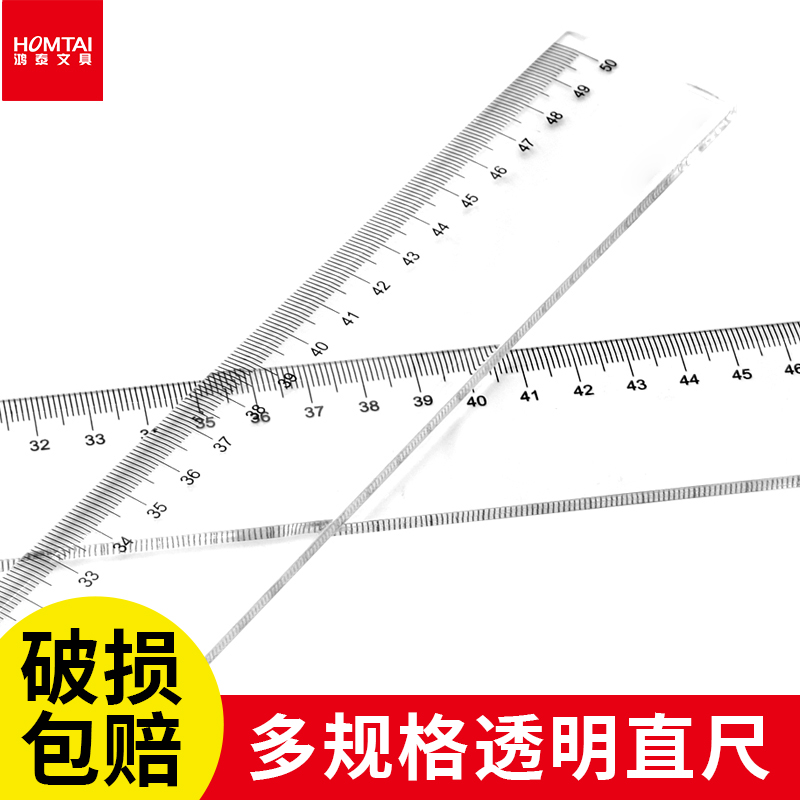 鸿泰直尺学生专用50CM办公文具尺子制绘图测量透明50公分20/30/40/60/100厘米格尺一年级美术生塑料加厚板尺