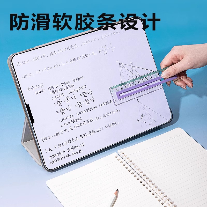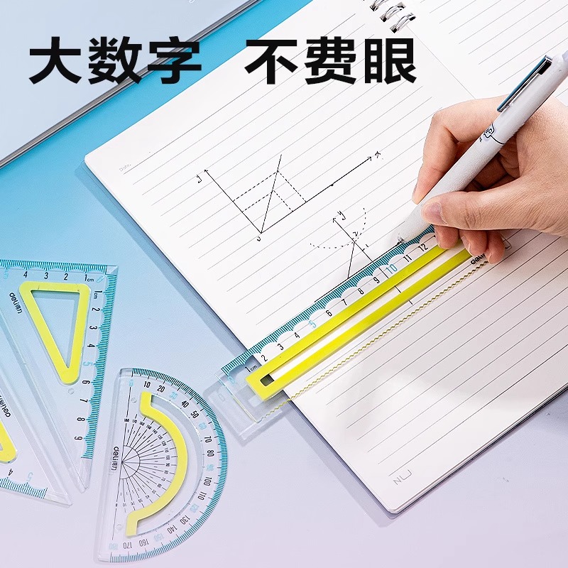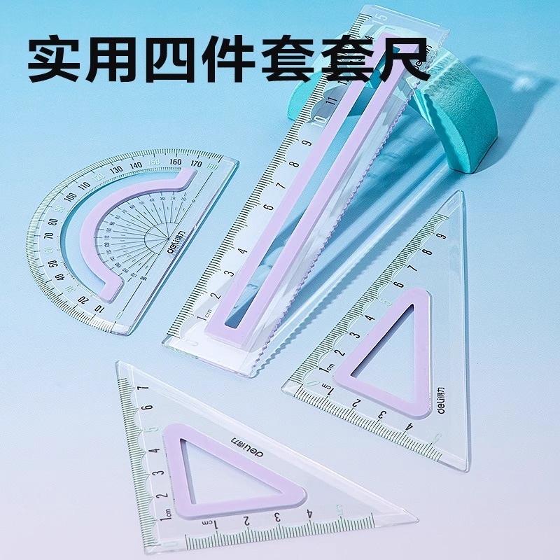 得力防滑四件套尺子大数字三角尺20cm直尺量角器透明套装小学生用