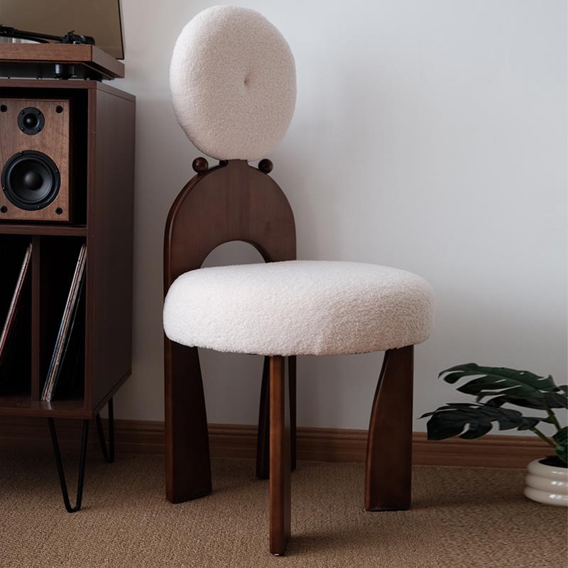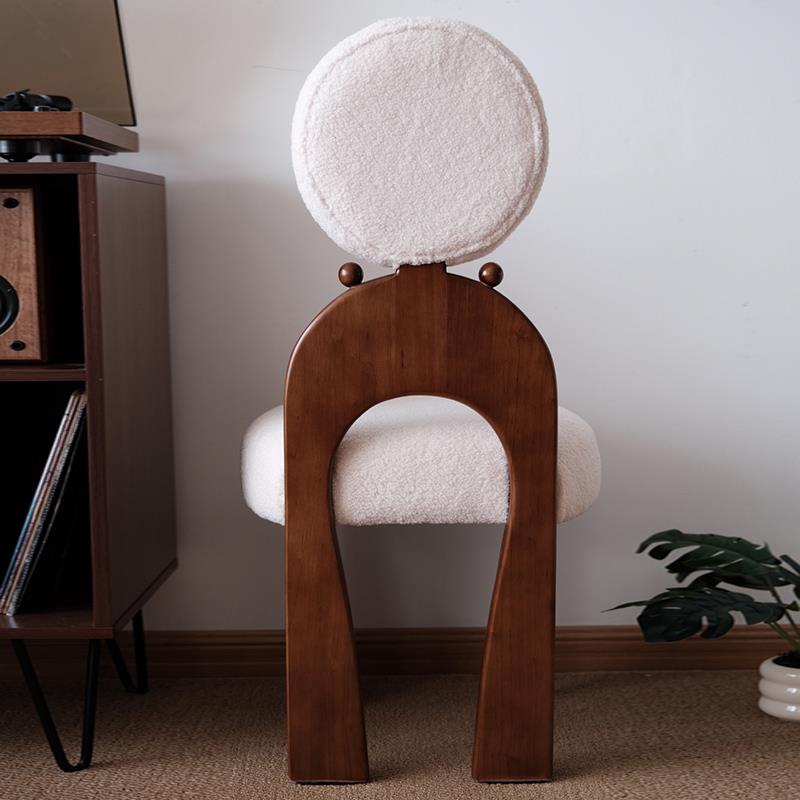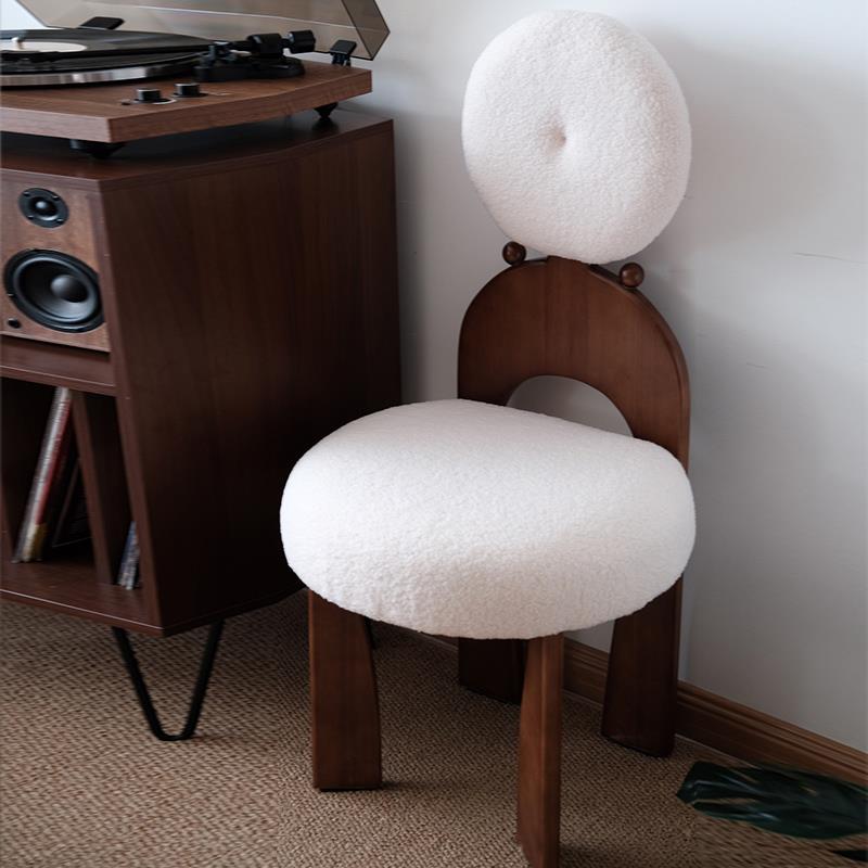 宏特维实木餐椅家用中复古设计师创意耳环椅子法式靠背羊羔绒梳化妆椅凳摆件饰品