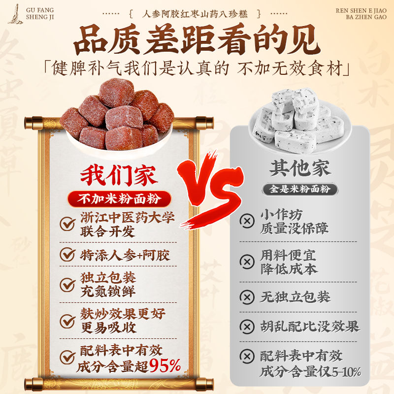 浙江中医药八珍糕正品官方旗舰店人参阿胶红枣山药茯苓芡实糕零食