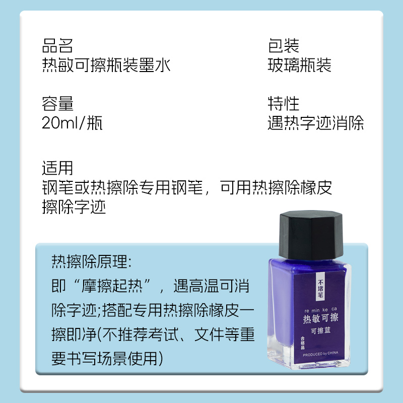 热可擦钢笔专用墨水升级版可擦钢笔墨水小学生用大容量瓶装可擦蓝