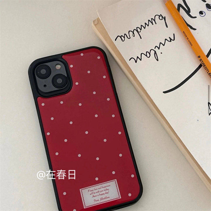 在春日韩系ins新年红波点黑边手机壳17promax/13适用iPhone14pro/11全包12/15新款16promax女生保护壳16