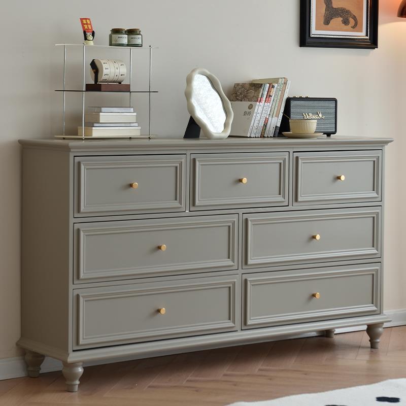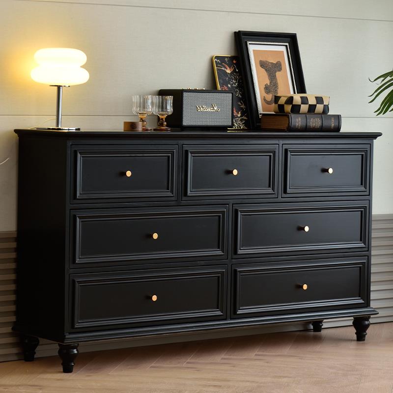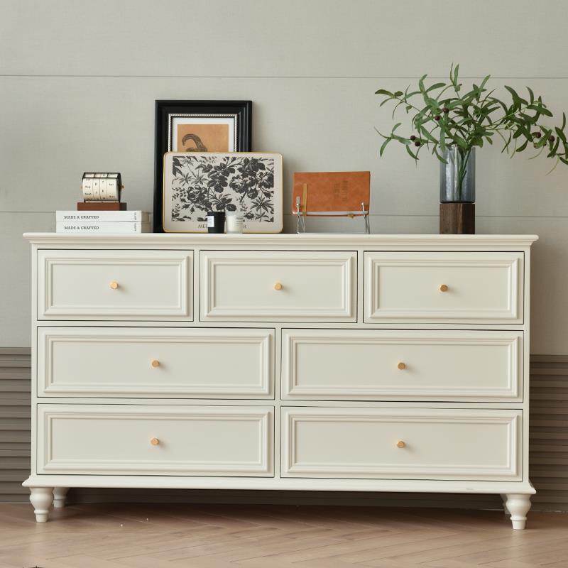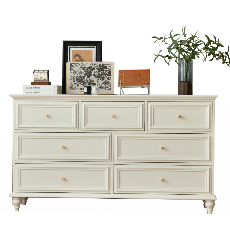 宏特维美式全实木客厅边 柜 白色靠墙抽屉储物收纳 柜 乡村田园风卧室七斗 柜摆件饰品