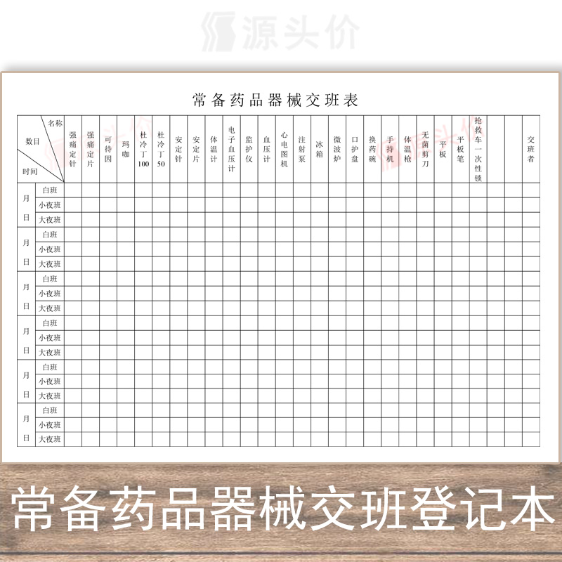 常备药品器械交班登记本备用急救抢救室医院临床科室物品清单记录