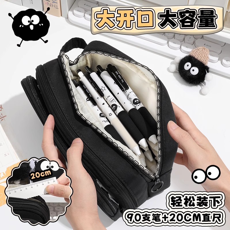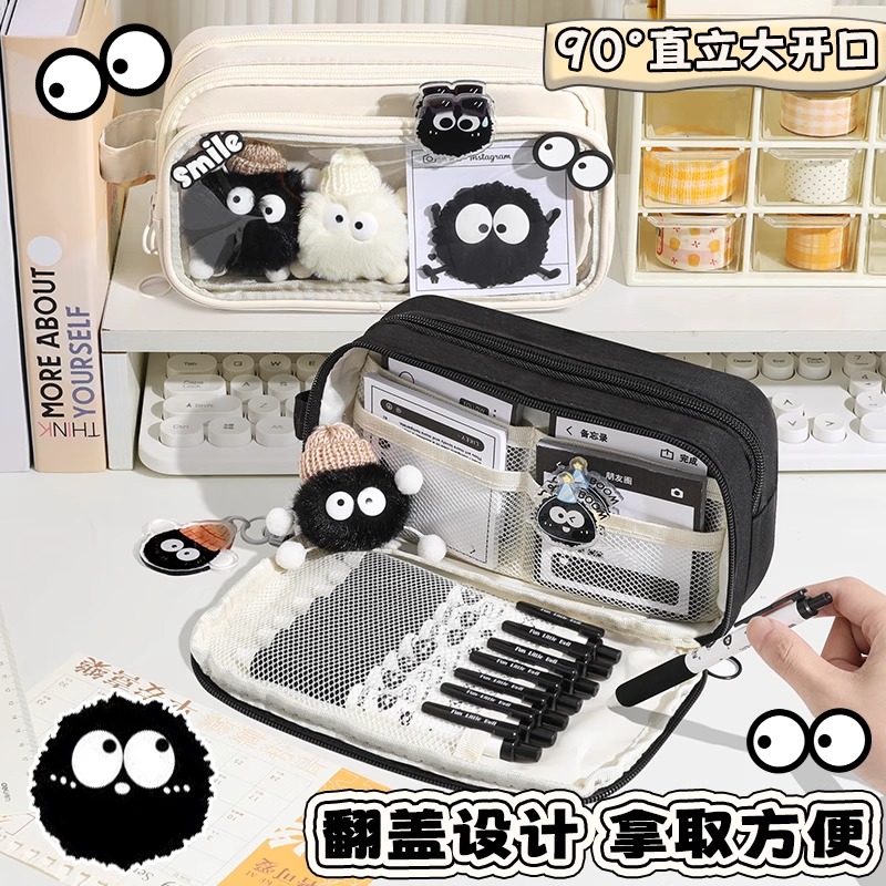 神秘小煤球~2025新款高颜值ins风10层可拆卸笔袋女生文具盒透明大容量小众文具袋男孩款女孩小学生初中铅笔盒