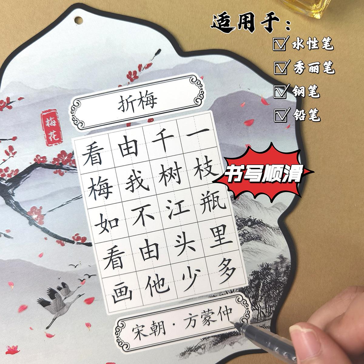 酷的双面硬笔书法团扇硬笔书法扇子加厚田字格五言七言专用香影摇波双面书写文创团扇创意国风扇子茉莉牡丹