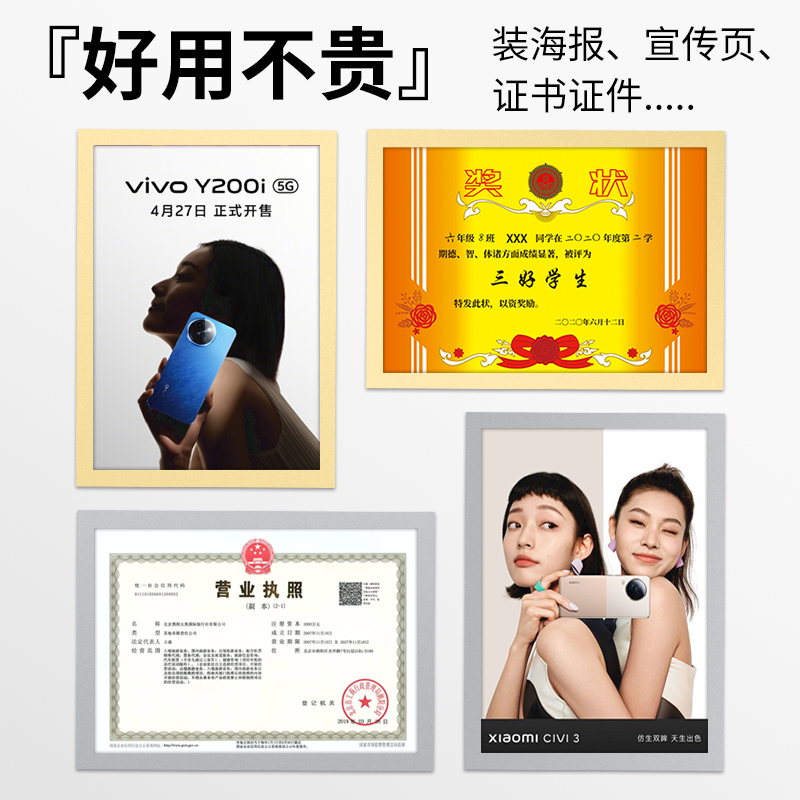 磁性展示贴挂墙照片磁吸广告框A4个体户营业执照保护卡套a3免打孔荣誉墙展示贴横竖通用软磁贴挂墙磁性展示贴